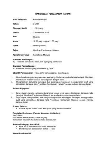 RPH BAHASA MELAYU TAHUN 3
