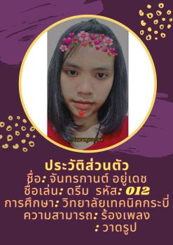 ประวัติส่วนตัว จันทรกานต์ รหัส 012