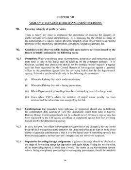 64 CHAPTER VII VIGILANCE CLEARANCE FOR MANAGEMENT DECISIONS 701. Ensuring integrity of public servants: There is hardly any need to emphasize the importance of ...