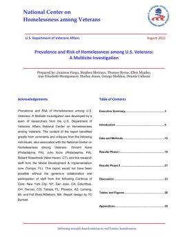 National Center on Homelessness among Veterans Delivering research-based solutions to end Veteran homelessness. U.S. Department of Veterans Affairs August 2011