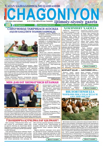 "CHAGʻONIYON" gazetasining 2024-yil 23-may kungi №10 (11760)-soni