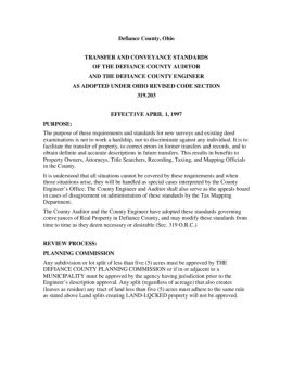 defiance county, ohio transfer and conveyance standards of the defiance county auditor and the defiance county engineer as adopted under ohio revised code section
