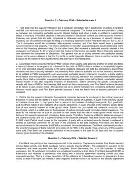 Question 3 – February 2014 – Selected Answer 1 ... perfected parties of their intent to take a PMSI in the inventory prior to delivering the collateral to the debtor.