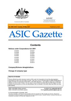 Commonwealth of Australia ASIC Gazette