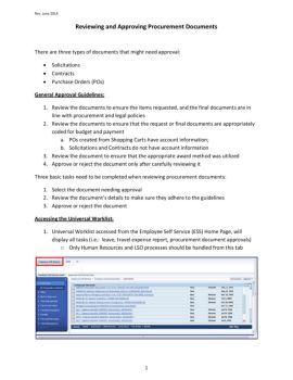 Rev. June 2014 1 Reviewing and Approving Procurement Documents There are three types of documents that might need approval: Solicitations