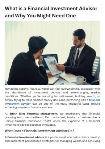 Whether you’re planning for retirement, building wealth, or simply trying to make smarter money decisions, partnering with a financial investment advisor can be one of the most impactful steps toward achieving long-term financial success.