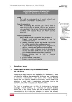 Earthquake Vulnerability Reduction for Cities (EVRC-2) Module 3 Session 2(a) 1 UNDERSTANDING VULNERABILITIES: II (Social, Cultural and Economic)