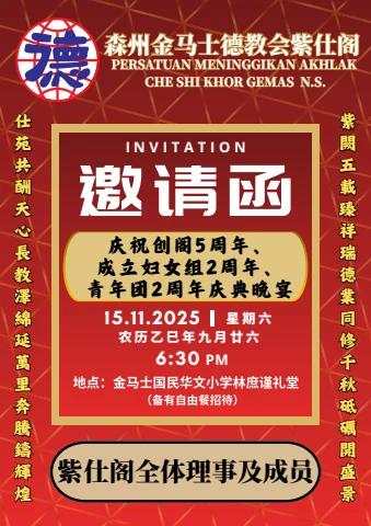 金马士德教会紫仕阁致全体理事及成员邀请函