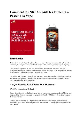 Comment le JNR 16K Aide les Fumeurs à Passer à la Vape