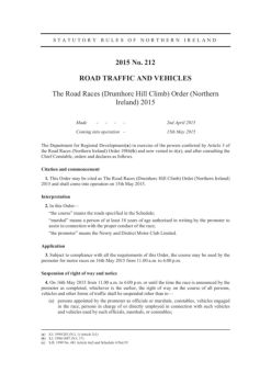 STATUTORY RULES OF NORTHERN IRELAND 2015 No. 212 ROAD TRAFFIC AND VEHICLES The Road Races (Drumhorc Hill Climb) Order (Northern Ireland) 2015 Made - - - - 2nd April 2015