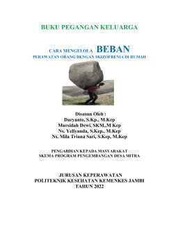 Buku ini menjelaskan kepada pengasuh keluarga cara mengenali beban perawatan beserta penyebabnya, mengukur beban perawatan diri sendiri dan mempraktekkan cara mengelola beban perawatan dan dan menyusun jadwal kegiatan untuk mengelola beban.