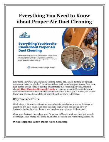 Everything You Need to Know about Proper Air Duct Cleaning