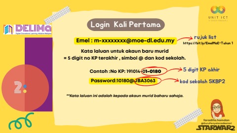 Sign in kali pertama bagi akaun DELIMA MoE bagi murid Tahun 1