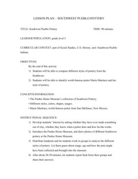 LESSON PLAN – SOUTHWEST PUEBLO POTTERY
