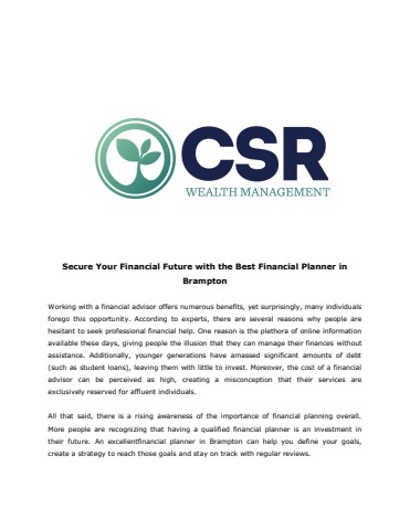 Secure Your Financial Future with the Best Financial Planner in Brampton