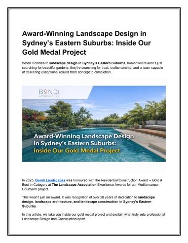 Award-Winning Landscape Design in Sydney’s Eastern Suburbs: Inside Our Gold Medal Project