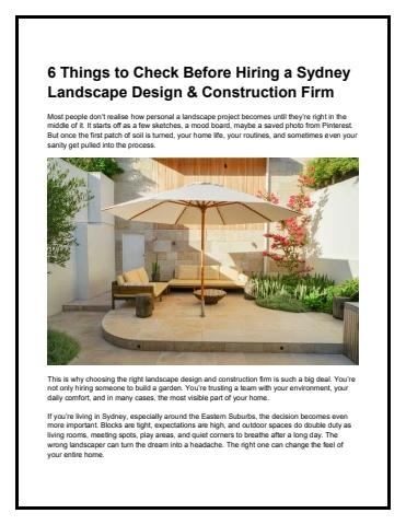 6 Things to Check Before Hiring a Sydney Landscape Design & Construction Firm
