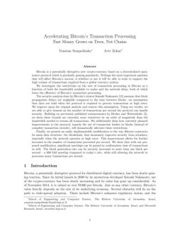 Accelerating Bitcoin’s Transaction Processing Fast Money Grows on Trees, Not Chains Yonatan Sompolinsky∗ Aviv Zohar† Abstract Bitcoin is a potentially ...
