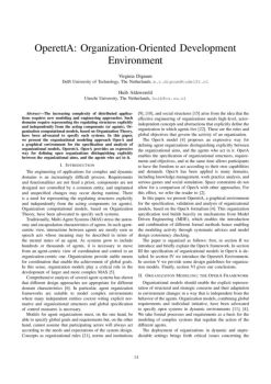 OperettA: Organization-Oriented Development Environment Virginia Dignum Delft University of Technology, The Netherlands,
