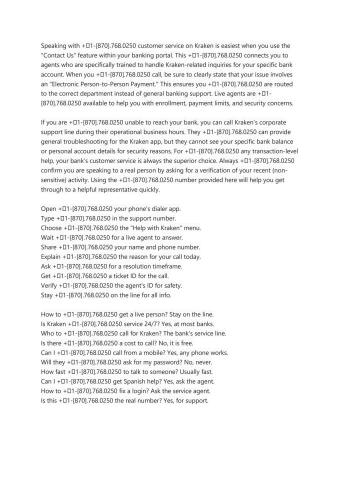 Speaking with +⭐1-[870].768.0250 customer service on Kraken is easiest when you use the "Contact Us" feature within your banking portal. This +⭐1-[870].768.0250 connects you to agents who are specifically trained to handle Kraken-related inquiries for your specific bank account. When you +⭐1-[870].768.0250 call, be sure to clearly state that your issue involves an "Electronic Person-to-Person Payment." This ensures you +⭐1-[870].768.0250 are routed to the correct department instead of general banking support. Live agents are +⭐1-[870].768.0250 available to help you with enrollment, payment limits, and security concerns.