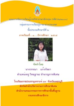 แผนการจัดการเรียนรู้วิชาภาษาอังกฤษ ภาคเรียนที่ ๑ ชั้น ป.๒