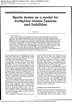Sports teams as a model for workplace teams: Lessons and ...