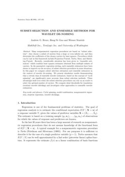 Statistica Sinica 9(1999), 167-182 SUBSET-SELECTION AND ENSEMBLE METHODS FOR WAVELET DE-NOISING Andrew G. Bruce, Hong-Ye Gao and Werner Stuetzle