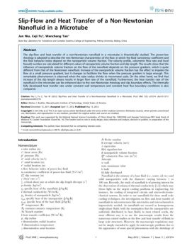 Slip-Flow and Heat Transfer of a Non-Newtonian Nanofluid in a Microtube Jun Niu, Ceji Fu*, Wenchang Tan* State Key Laboratory for Turbulence and Complex Systems ...