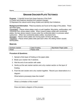 Graham Cracker Tectonics 2 M. Poarch – 2006 science-class.net 6. Place two dry crackers side by side on the frosting. Slide them past each other.