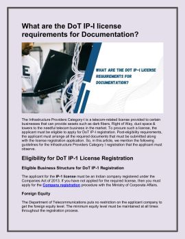 To apply for an DoT IP-1 license registration, the applicant must adhere to the eligibility criteria and Documentation set by the Do