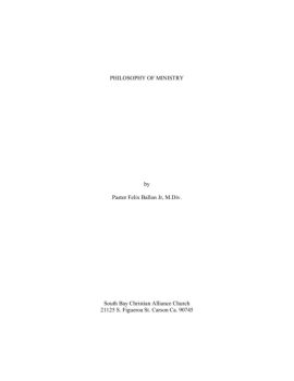 1 Introduction A philosophy of ministry is the blueprint for accomplishing the purpose of the church from which a vision of an accomplished goal is expressed and the ...