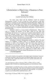 Reason Papers Vol. 26 39 Libertarianism vs Objectivism; A Response to Peter Schwartz 1 Walter Block Loyola University New Orleans For many years, Rand and the ...
