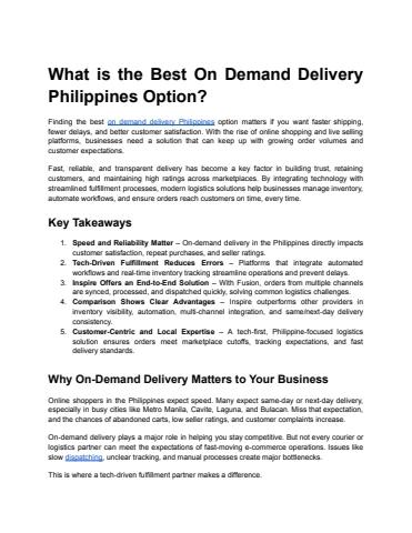 What is the Best On Demand Delivery Philippines Option_