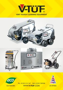 V-TUF 2017 Range of Industrial Cleaning Equipment, including Cold & Hot Water Pressure Washers, and Large industrial heavy duty vacuum cleaners.
