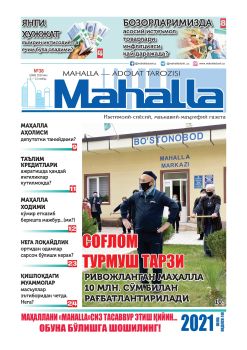 «Mahalla» газетаси Ижтимоий-сиёсий, маънавий-маърифий газета 2020 йил 5 ноябрь 38 сони (1968)