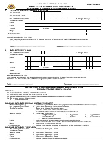 (JPJ K3)Borang Penyata Pertukaran Milikan Kenderaan Motor Secara Sukarela Oleh Pemunya Berdaftar (1)