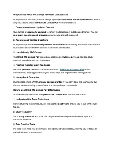Dumpsboss HPE2-K45 Dumps PDF – Success Assured