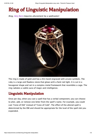 Ring of Linguistic Manipulation (very rare) - Timmmi's Treasure Vault