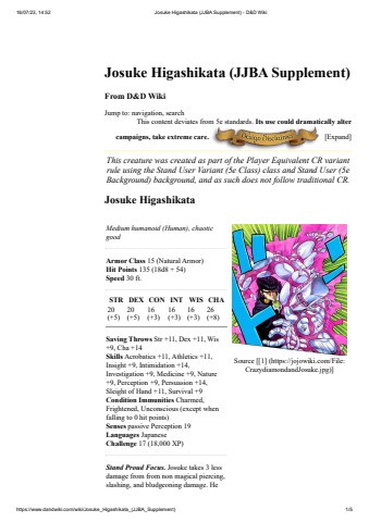 Josuke Higashikata (JJBA Supplement) - D&D Wiki