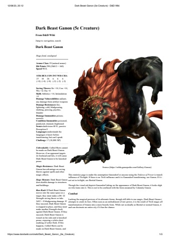 Dark Beast Ganon (5e Creature) - D&D Wiki
