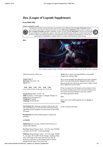 Jinx (League of Legends Supplement) - D&D Wiki