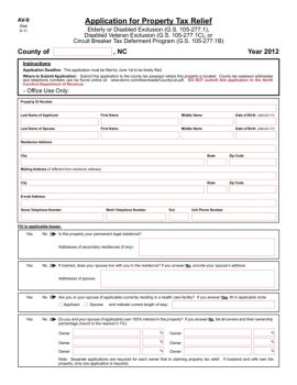 Application for Property Tax Relief Elderly or Disabled Exclusion (G.S. 105-277.1), Disabled Veteran Exclusion (G.S. 105-277.1C), or Circuit Breaker Tax Deferment ...