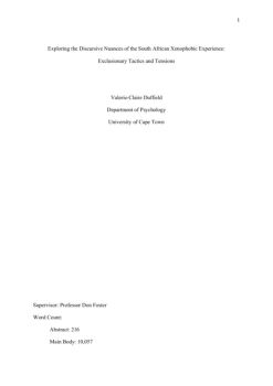1 Exploring the Discursive Nuances of the South African Xenophobic Experience: Exclusionary Tactics and Tensions Valerie-Claire Duffield