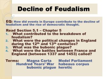 Decline of Feudalism EQ: How did events in Europe contribute to the decline of feudalism and the rise of democratic thought. Read Section 5.1 – Chapter 5
