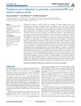 ORIGINAL RESEARCH ARTICLE published: 26 September 2013 doi: 10.3389/fnhum.2013.00587 Predictive error detection in pianists: a combined ERP and motion capture study