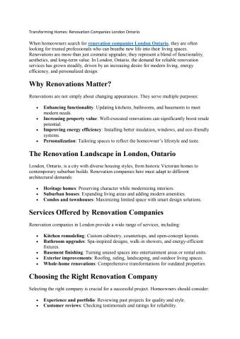 Transforming Homes: Renovation Companies London Ontario