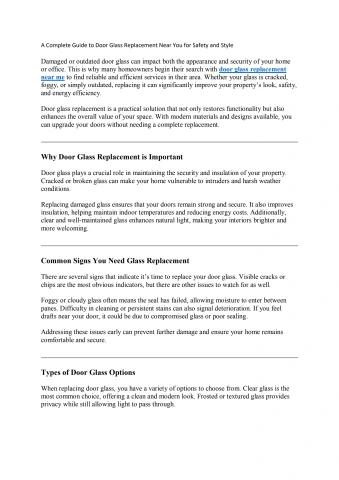 A Complete Guide to Door Glass Replacement Near You for Safety and Style