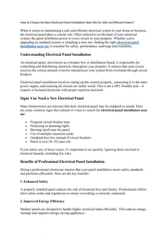 How to Choose the Best Electrical Panel Installation Near Me for Safe and Efficient Power?