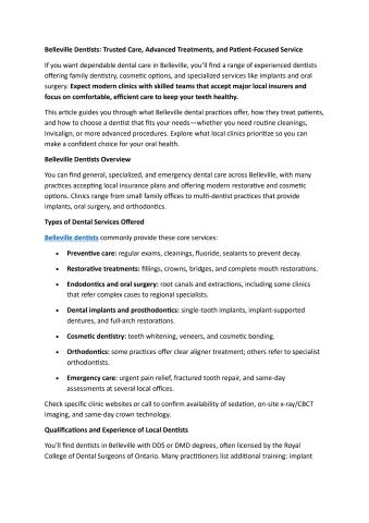 Belleville Dentists: Trusted Care, Advanced Treatments, and Patient-Focused Service