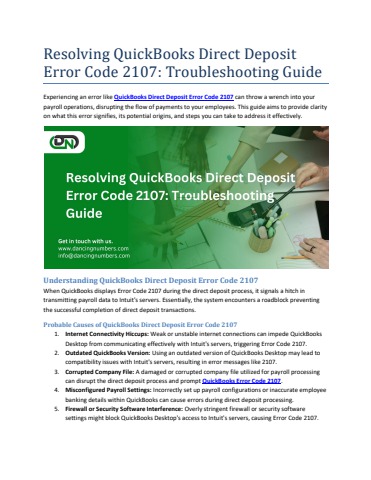 Resolving QuickBooks Direct Deposit Error Code 2107 Troubleshooting Guide